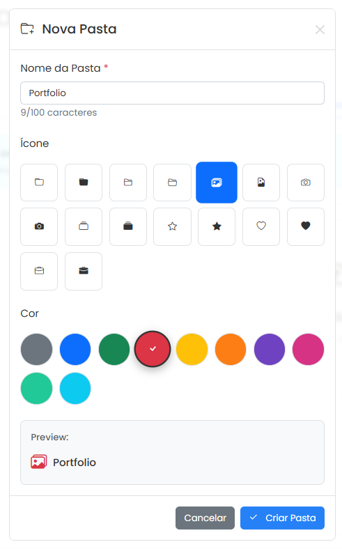 Você pode personaliza-la ao escolher: o nome da pasta, um ícone e uma cor.