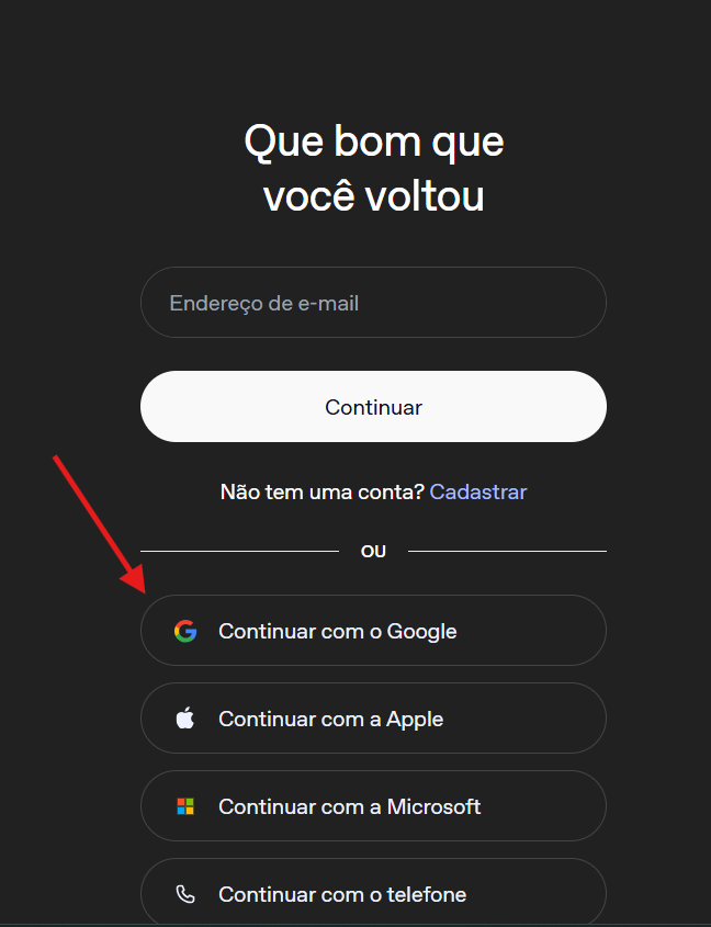 Entre no site platform.openai.com, logue com sua conta Google.