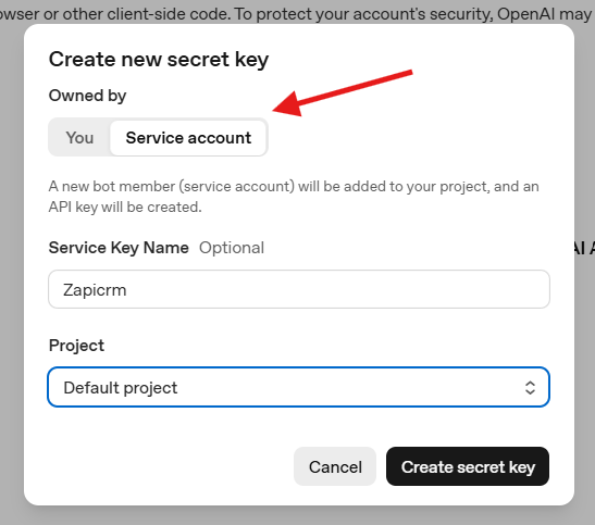 De um nome para sua chave, como: ZapiCRM.