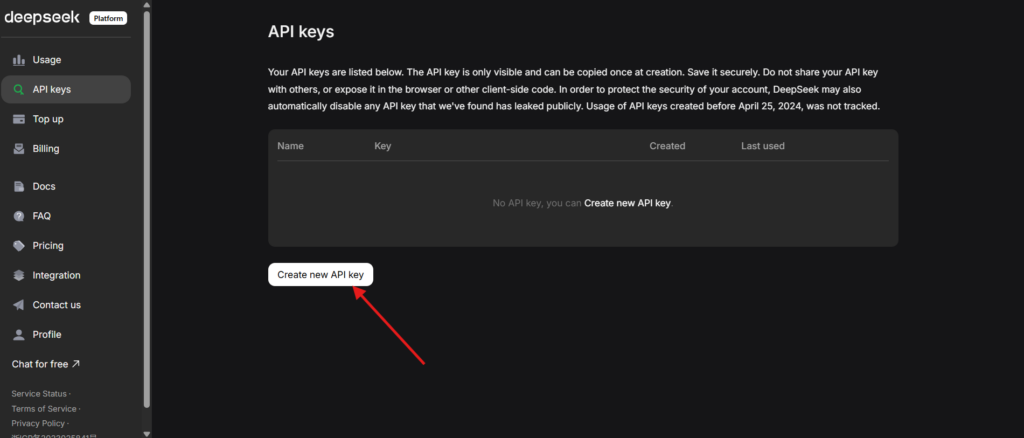 Primeiro, acesse o site oficial da DeepSeek e clique no botão access API