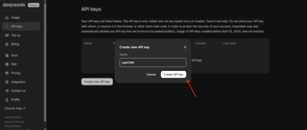 Pronto! Já pode usar o DeepSeek na ZapiCRM.